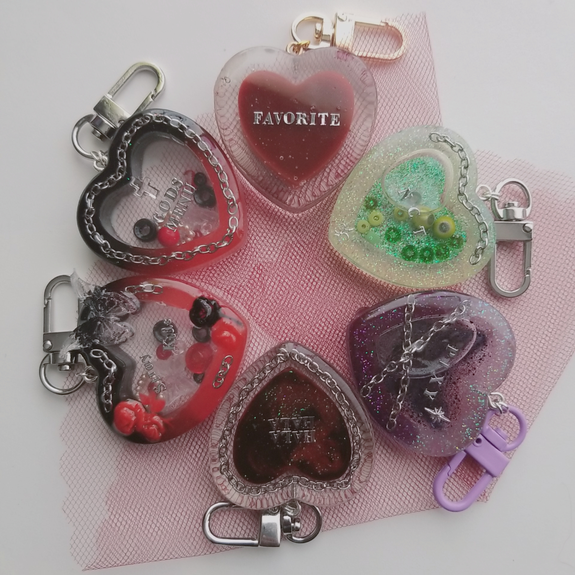 HANDMADE Resin heart charms featuring Stray Kids, ATEEZ, PIXY, and NCT!